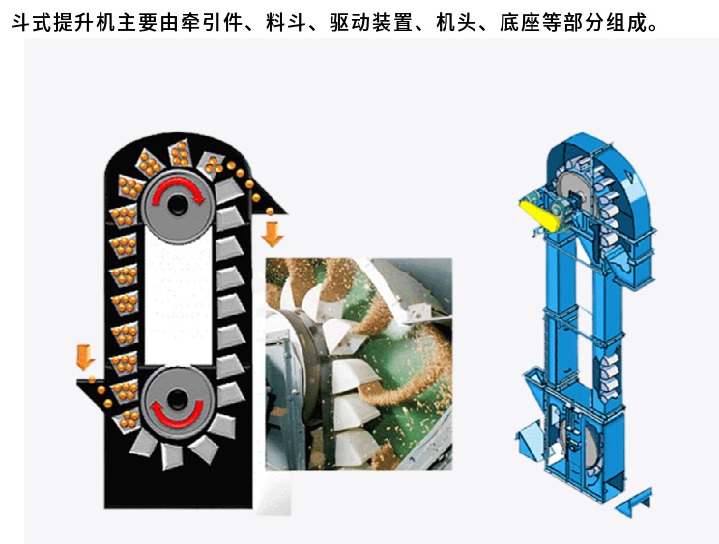 環(huán)鏈斗式提升機(jī)主要是依靠固定在鏈條上的料斗,將均勻流入尾部進(jìn)料口的物料從斗式提升機(jī)尾部不間斷地提升到斗式提升機(jī)頭部,并 然后從機(jī)頭出口卸下物料,完成整個物料提升過程。適合輸送堆積密度小于1.5t/m³易于掏取的粉狀、粒狀、小塊狀的低磨琢性物料 ,如:煤、水泥、碎石、砂子、化肥等,比普通機(jī)型提高30%以上。